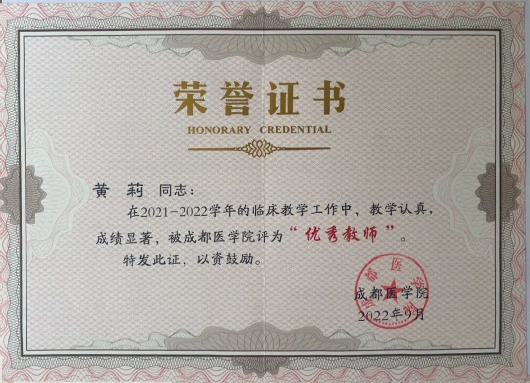 黄莉,副主任医师,硕士研究生,成都医学院第一附属医院住院医师规范化培训儿科专业基地教学主任,四川省医学会儿科专业学会第六届新生儿学会委员,四川省妇幼保健协会儿童呼吸专业委员会第一界委员会副主任委员。主持课题3项,参编儿科学教材2部及儿科学思政教材1部,连续多年担任四川省住院医师规范化培训儿科骨干师资培训班主讲教师。在学校组织的2025年“讲述我的育人故事”活动中荣获三等奖。